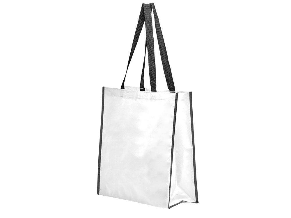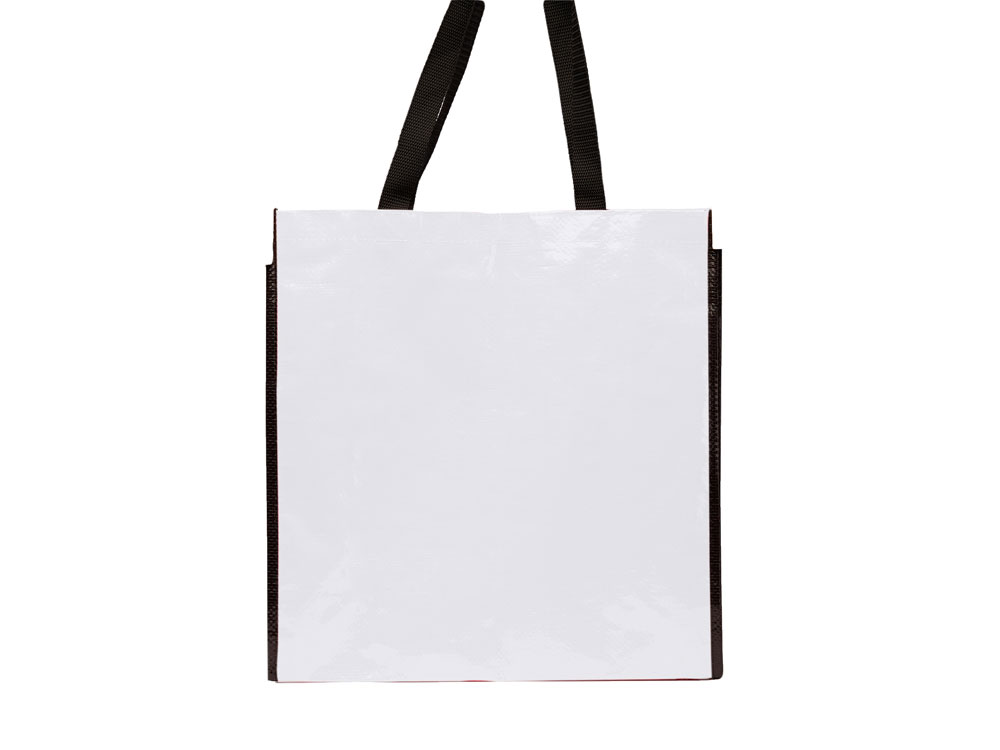 Сумка многоразового использования с глянцевой ламинированной отделкой. Прочный материал с ручками из усиленного нейлона и соответствующей черной окантовкой.