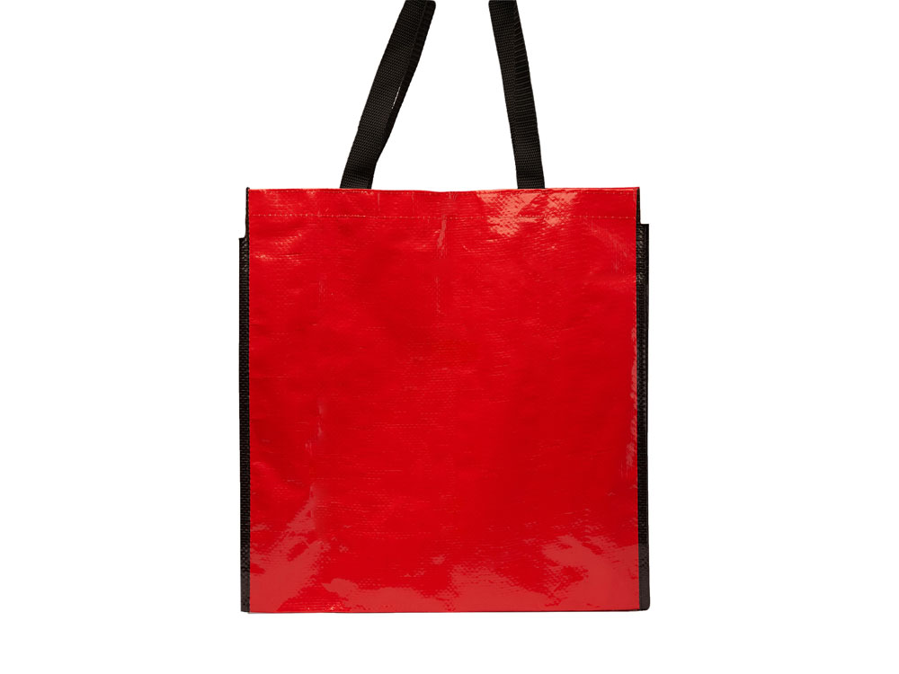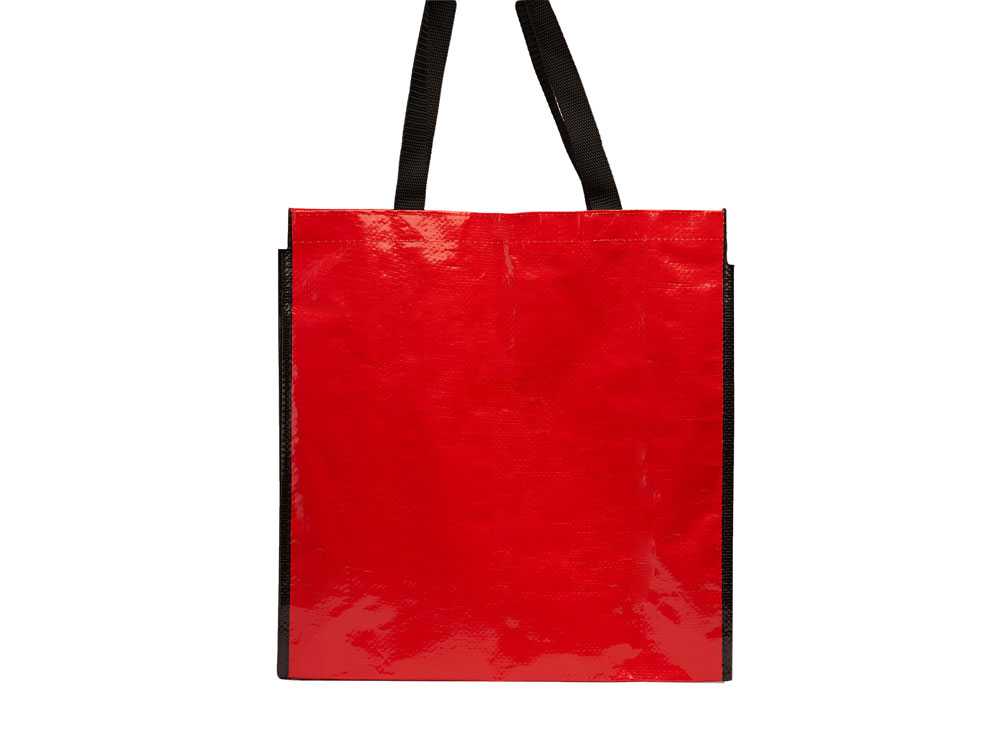 Сумка многоразового использования с глянцевой ламинированной отделкой. Прочный материал с ручками из усиленного нейлона и соответствующей черной окантовкой.