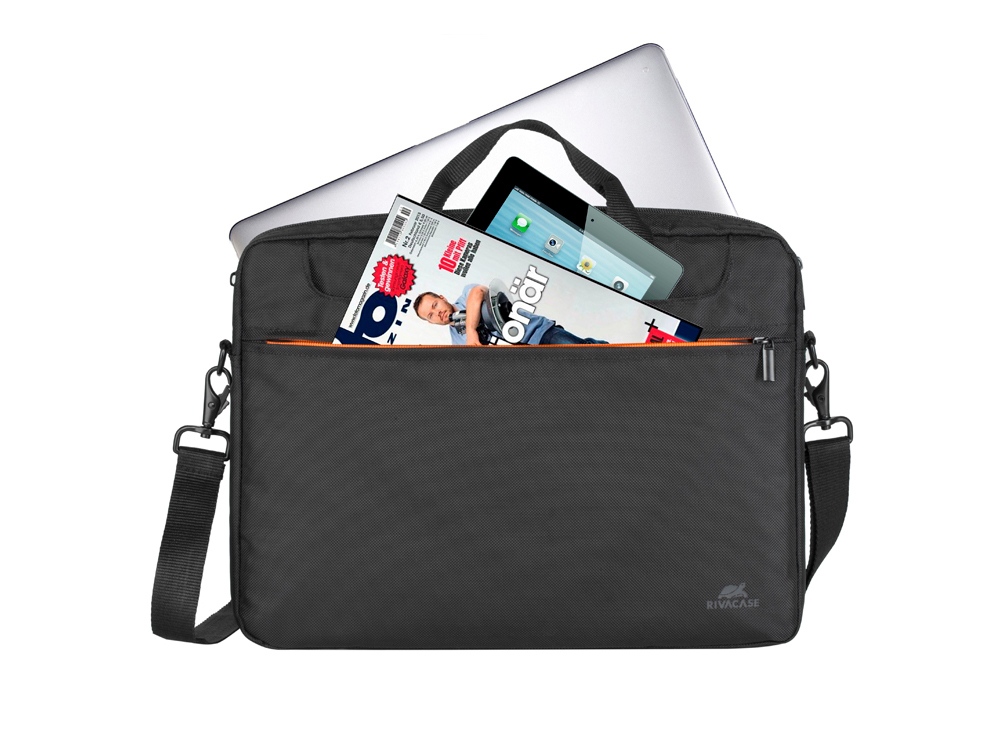Сумка для ноутбука до 15.6''. • Сумка выполнена из плотного материала для лучшей защиты ноутбука от случайных механических повреждений. • Помимо основного отсека, сумка оснащена тремя дополнительными карманами, в которых без труда разместятся документы, аксессуары и другие небольшие гаджеты. • Двойная молния для удобного доступа к ноутбуку. • Ручки убираются во внешние отделения с двух сторон, что придает сумке более компактный вид. • Регулируемый съемный плечевой ремень.
