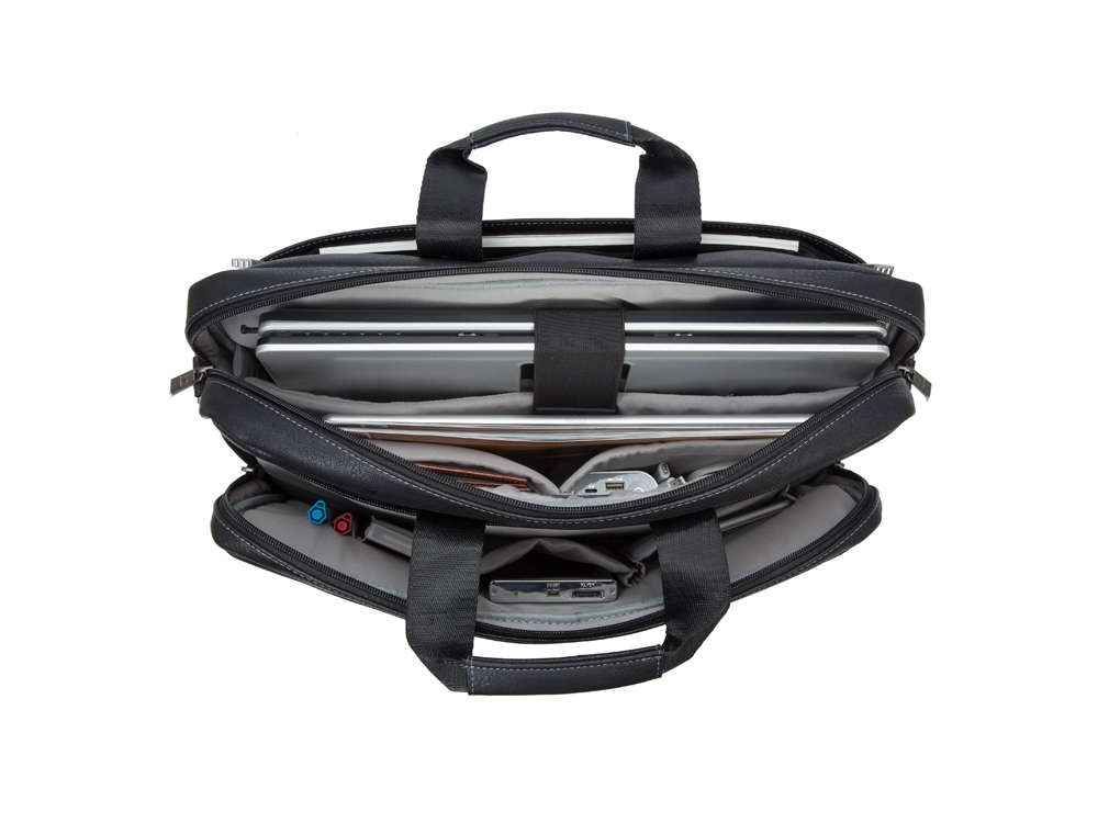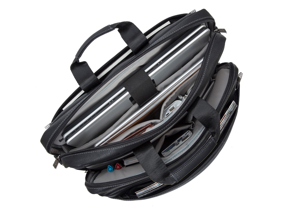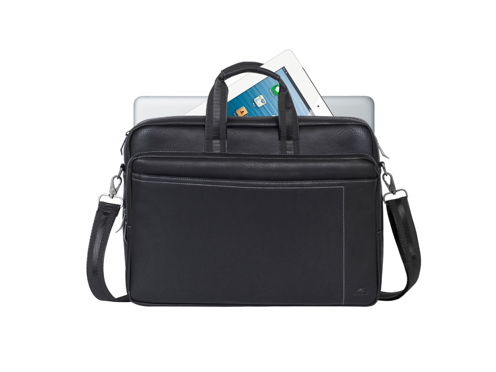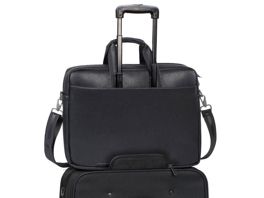 Сумка для ноутбука до 16''. • Многофункциональная сумка для ноутбуков до 16. • Сумка выполнена из плотной искусственной кожи для защиты ноутбука от случайных ударов и царапин, а также от пыли и влаги. • Основное отделение для ноутбука, имеет мягкие стенки и ремень для надежной фиксации ноутбука до 16. • Два дополнительных внутренних отделения помогут удобно разместить все необходимые аксессуары, планшет до 10.1 и документы. • Два внешних передних кармана на молнии. Один для хранения аксессуаров, зарядного устройства. Второй оборудован панелью-органайзером для хранения визитных карт, авторучек, смартфона. • Дополнительное отделение на задней панели для хранения аксессуаров, документов. • На задней панели имеется карман на молнии для крепления сумки к ручке чемодана. • Ручки из оригинальной, цельной стропы закреплены через всю внутреннюю поверхность, что значительно усиливает конструкцию сумки. • Металлическая, оригинальная фурнитура. • Регулируемый, съемный плечевой ремень с мягкой накладкой.