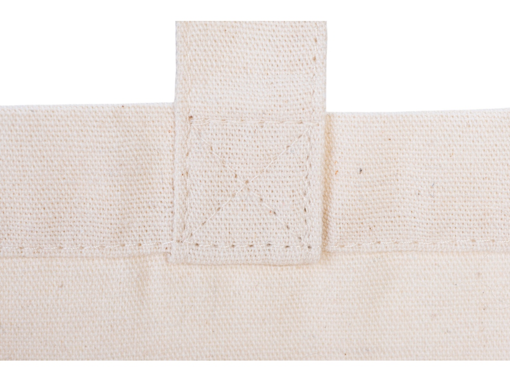 Удобная сумка-шоппер из переработанного хлопка. Можно хранить в сложенном виде и фиксировать с помощью эластичной ленты, застегивающейся на кнопку.