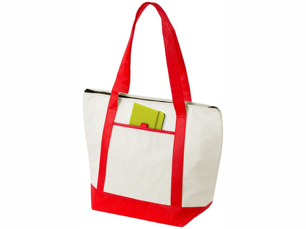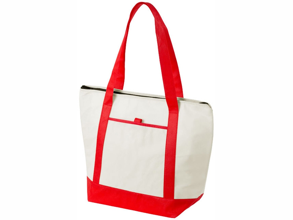 Нетканая сумка-холодильник Lighthouse. Основное отделение на молнии с двойными ручками. Высота ручек 23,5 см. Открытый передний карман с держателем для ручки. Аксессуары не включены. Нетканый полипропилен 80 г/м².