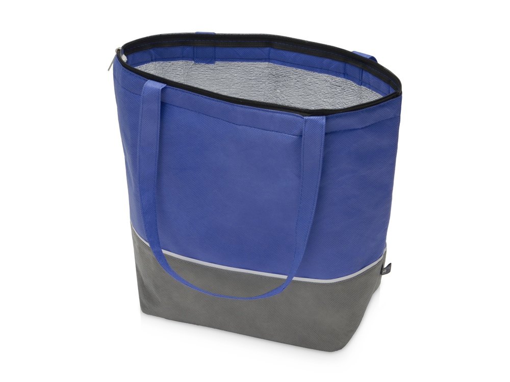 Вместительная сумка-холодильник из переработанного пластика. Удобные длинные ручки для ношения на плече. Застегивается на молнию.