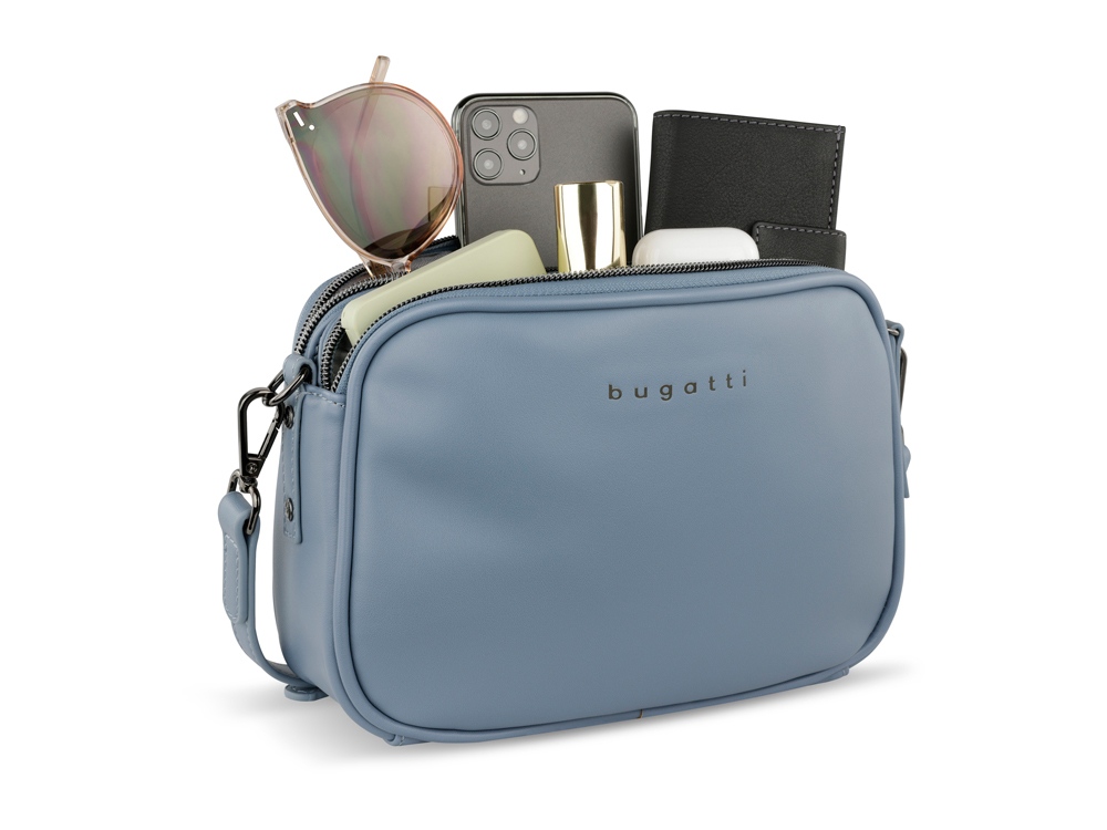 Сумка кросс-боди женская BUGATTI Almata, голубая, полиуретан, 21,5х6х15 см