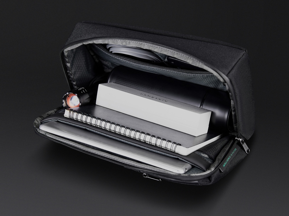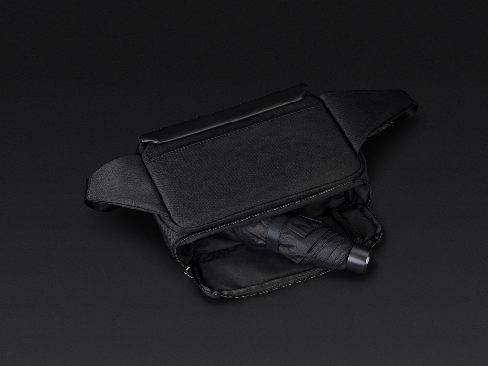 Сумка-слинг - модный и стильный аксессуар. Карман быстрого доступа к содержимому на магните разработан для большего удобства при использовании. Множество карманов внутри помогают аккуратно раскладывать содержимое. Задний потайной карман закрывается на магнит. Карман для бутылки или зонта на дне сумки. Карабин для ключей на ретракторе. Лямка с магнитной застежкой. Водостойкие материал и молнии. Спереди светоотражающий элемент для большей защиты в темное время суток. Поставляется в коробке с ручкой.
