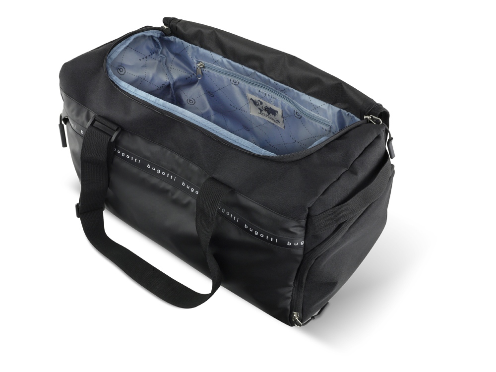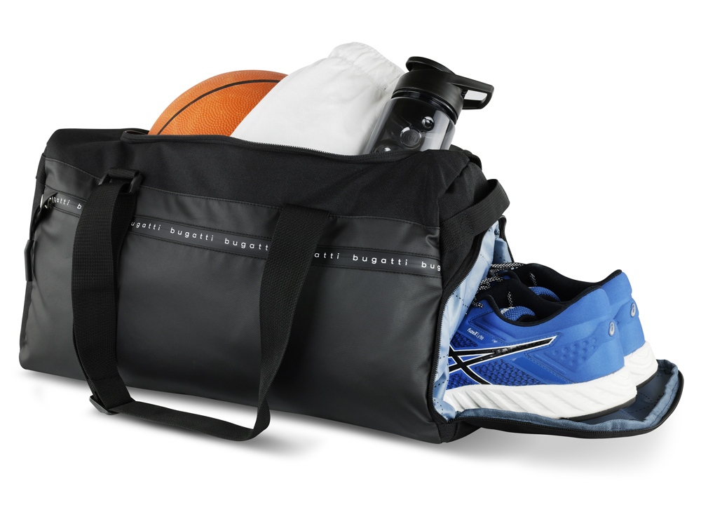 СУМКА СПОРТИВНАЯ BLANC DELIGHT Синергия дизайна и функциональности. Представляем нашу коллекцию универсальных, чрезвычайно стильных и суперлегких сумок и рюкзаков BLANC DELIGHT в облегченной версии. В качестве основного материала используется 100% переработанный нейлон плотностью 600D и облегченный тарпаулин с водоотталкивающими свойствами. Скрытые молнии с логотипом Bugatti не только защищают от проникновения влаги, но и дополняют стильный дизайн коллекции. С сумками BLANC DELIGHT будьте готовы быть в центре внимания! СВОЙСТВА Функциональная организация: основное отделение на молнии с карманом на молнии, боковое отделение для обуви на молнии, передний карман на молнии, 2 боковые ручки, ремень для крепления к телескопической ручке чемодана, 2 регулируемые ручки, которые можно использовать как плечевые ремни (до 75 см). Материал: нейлон RPET600D/облегченный тарпаулин/полиэстер Размер: 47 х 23 х 28 см Вес: 0,47 кг Объем: 22 л
