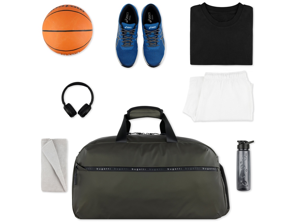 СПОРТИВНАЯ СУМКА BLANC Рады представить вам нашу новую серию универсальных и чрезвычайно стильных сумок и рюкзаков Blanc. В этой линейке наши дизайнеры добились идеального сочетания дизайна, функциональности и пригодности для повседневного использования. В качестве основного материала используется тарпаулин - очень лёгкая ткань с водоотталкивающими свойствами. Скрытые молнии с логотипом Bugatti не только защищают от проникновения влаги, но и дополняют стильный дизайн коллекции. С сумками Blanc будьте готовы быть в центре внимания! СВОЙСТВА Внутренняя организация: основное отделение на молнии с 2 открытыми карманами и карманом на молнии Внешняя организация: передний карман на молнии, ремень для соединения с телескопической ручкой чемодана, боковой карман на молнии для обуви, ручки высотой 14 см, съёмный регулируемый плечевой ремень (до 130 см) Размер: 52 x 26 x 27,5 см Вес: 0,65 кг Материал: тарпаулин / полиэстер