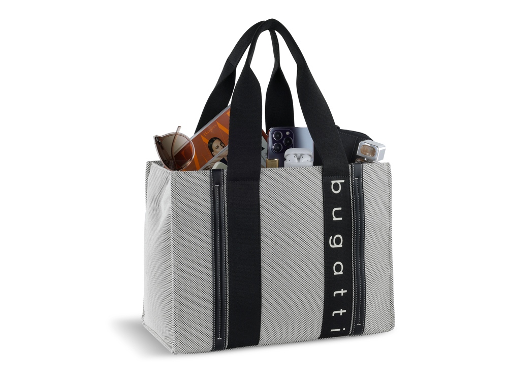 СУМКА-ТОУТ AMBRA Встречайте весенне-летний сезон с модной коллекцией женских сумок AMBRA. Сумки-тоуты и шопперы, входящие в линейку, изготовлены из первоклассной плотной ткани канвас в сером и бежевом цветах. Логотип bugatti, контрастные ручки и детали из полиуретана идеально дополняют дизайн, подчеркивают выразительность и индивидуальность каждой модели. Сумки из коллекции AMBRA станут идеальным дополнением вашего образа. Позвольте себе быть очаровательными! Внутренняя организация: основное отделение с открытым карманом Внешняя организация: 2 ручки высотой 22,5 см Материал: канвас (хлопок) / полиэстер / полиуретан Размер: 36,5 x 19 x 27 см Вес: 0,66 кг