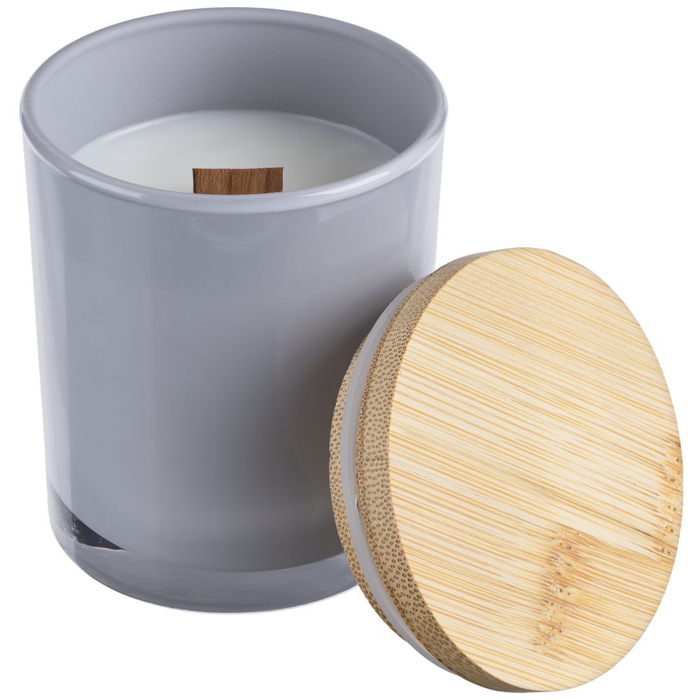 Материал свеча - воск, кокосовый, парафин; подсвечник - стекло; крышка - дерево; фитиль - дерево