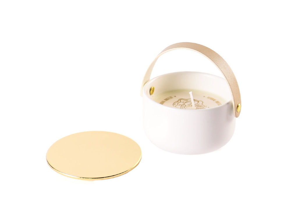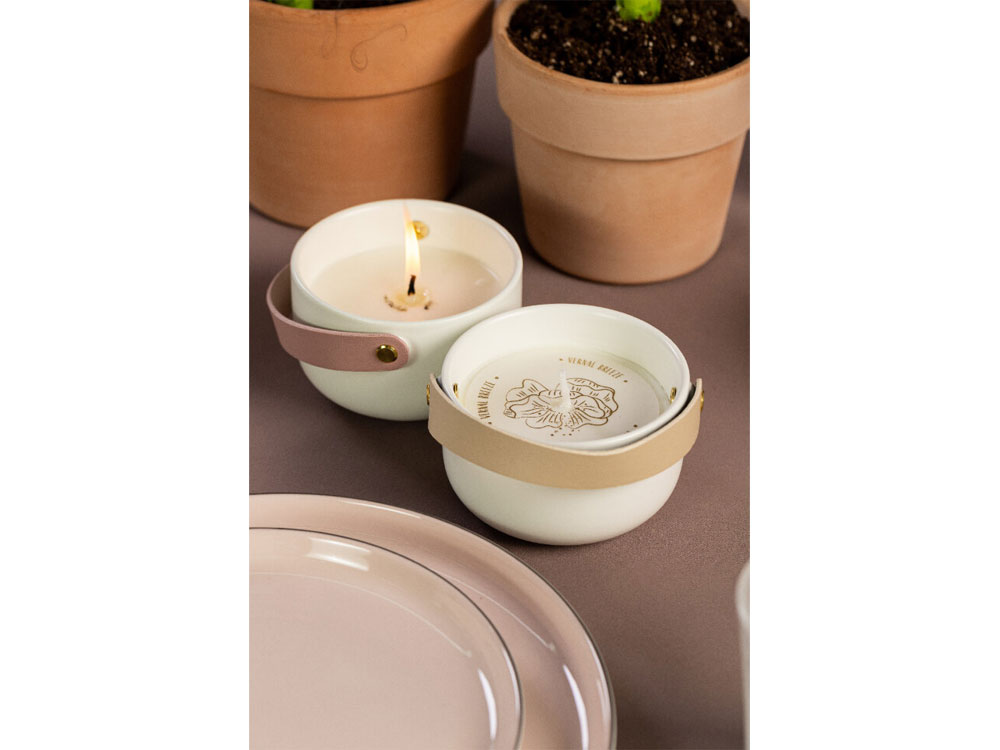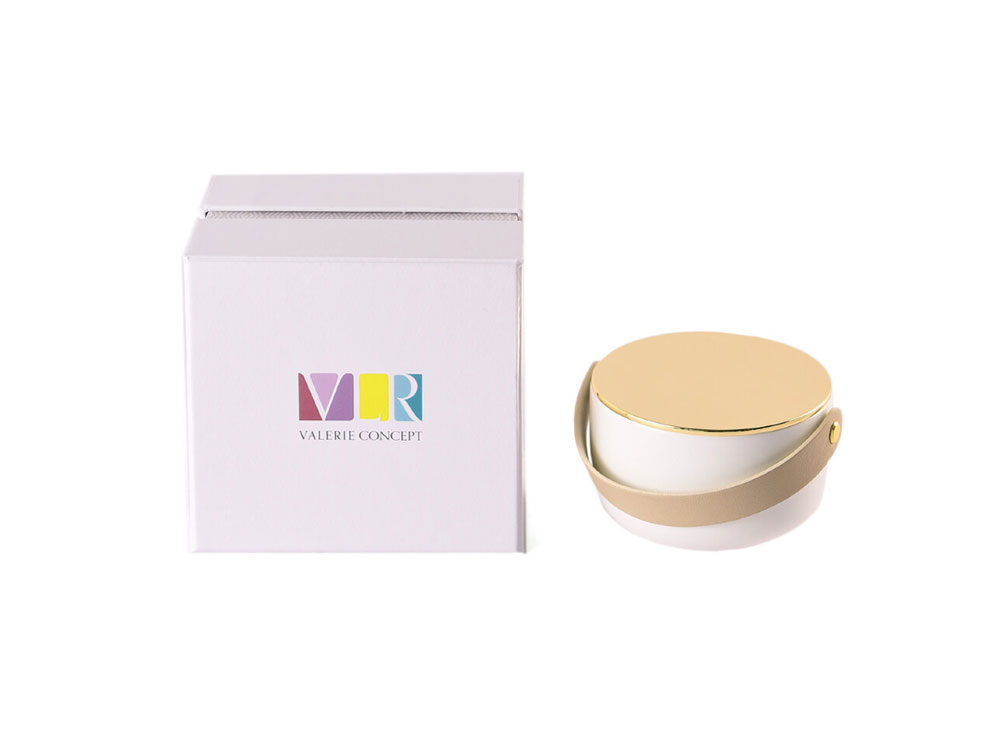 Стильная свеча в фарфоровом кашпо с крышкой и кожаными ручками от Valerie Concept. Изготовлена из натурального соевого воска с хлопковым фитилем, подарит вам долгие часы наслаждения и умиротворения, благодаря нежному аромату с нотками чарующих цветов и хлопка. Свеча упакована в презентабельную подарочную коробку с логотипом, это универсальный, готовый подарок для ценителей уюта, комфорта, красоты и идеальный способ побаловать себя. Детали: Емкость может использоваться вторично после того, как свеча прогорит, как кашпо, конфетчицу, контейнер для хранения и т.д. Время горения: 30 часов.