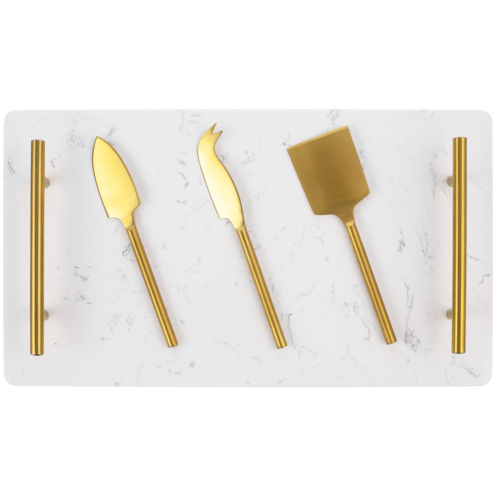 Сырный набор Chambery — выбор искушенных гурманов. В этом сете роскошно и продуманно все: изысканная кварцевая доска со специальными «ножками» для устойчивости и удобными ручками, а также стильные функциональные ножи для нарезки сыров разных сортов и твердости. Ведь на идеальной сырной тарелке обязательно должно быть несколько сортов!