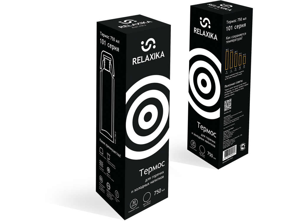 Классический термос Relaxika с высокими показателями удержания температуры напитка для походов, путешествий, спорта и ежедневного использования. Прочные двойные стенки из высококачественной нержавеющей стали 18/8 с вакуумной изоляцией гарантируют, что ваш напиток останется холодным в течение 36 часов и горячим до 30 часов. Этот материал не только прочен, но и гигиеничен, не выделяет никаких вредных для здоровья веществ. Ваши напитки сохраняет естественный вкус и не приобретут посторонний запах. Напиток остается холодным до 36 часов и горячим до 30 часов. - Узкое горлышко позволяет удерживать температуру максимально долго - Крышку термоса можно использовать как чашку BPA Free. В пластмассах, используемых для производства термосов, отсутствует Бисфенол А - Надежная закручивающаяся пробка с силиконовым кольцом защищает от протекания и помогает удерживать температура - Высококачественная нержавеющая сталь 18/8 Рекомендации по уходу Не рекомендуется использовать посудомоечные машины при мытье изделия. Мойте мягкими губками и жидкими моющими средствами. Не используйте сухие абразивные средства чтобы не поцарапать поверхность. После мытья необходимо протереть сухой салфеткой или полотенцем и оставить сушиться без крышки. Не для микроволновой печи или морозильной камеры. Чтобы предотвратить утечку, тщательно закройте верхнюю крышку.