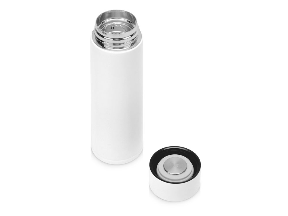 Вакуумный термос Module не только сохраняет ваши напитки горячими, но и показывает насколько они горячие! Уникальная особенность термоса - это сенсорный индикатор температуры, расположенный в крышке. Чтобы узнать температуру внутри термоса, достаточно прикоснуться к поверхности крышки. Внутренняя колба изготовлена из высококачественной стали марки SUS 316 с добавлением молибдена, что делает термос еще более устойчивым к коррозии*. Снаружи термос покрыт мягким прорезиненным покрытием soft touch, благодаря которому его приятно держать в руке. - Пищевая долговечная сталь марки SUS 316. - Сенсорный индикатор температуры. - Съемное ситечко. - Покрытие soft-touch. Элемент питания (CR2450) в крышке несъемный. Расчетное время работы 1000 дней или 80000 нажатий. * по сравнению с аналогами из 304 стали.