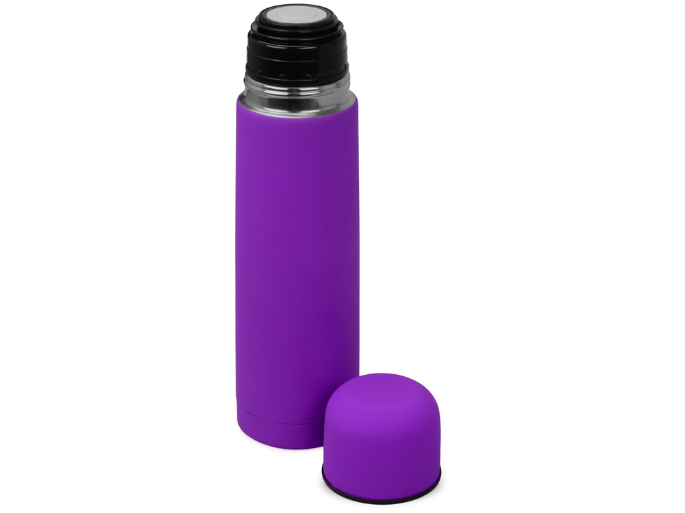 Универсальный термос с мягким прорезиненным покрытием софт-тач. Удобно и приятно держать в руке. Благодаря вакуумной изоляции и двойным стенкам сохраняет напитки горячими 24 часа. Герметичный клапан открывается и закрывается по легкому нажатию. Термос поставляется в дорожном чехле из искусственной кожи.