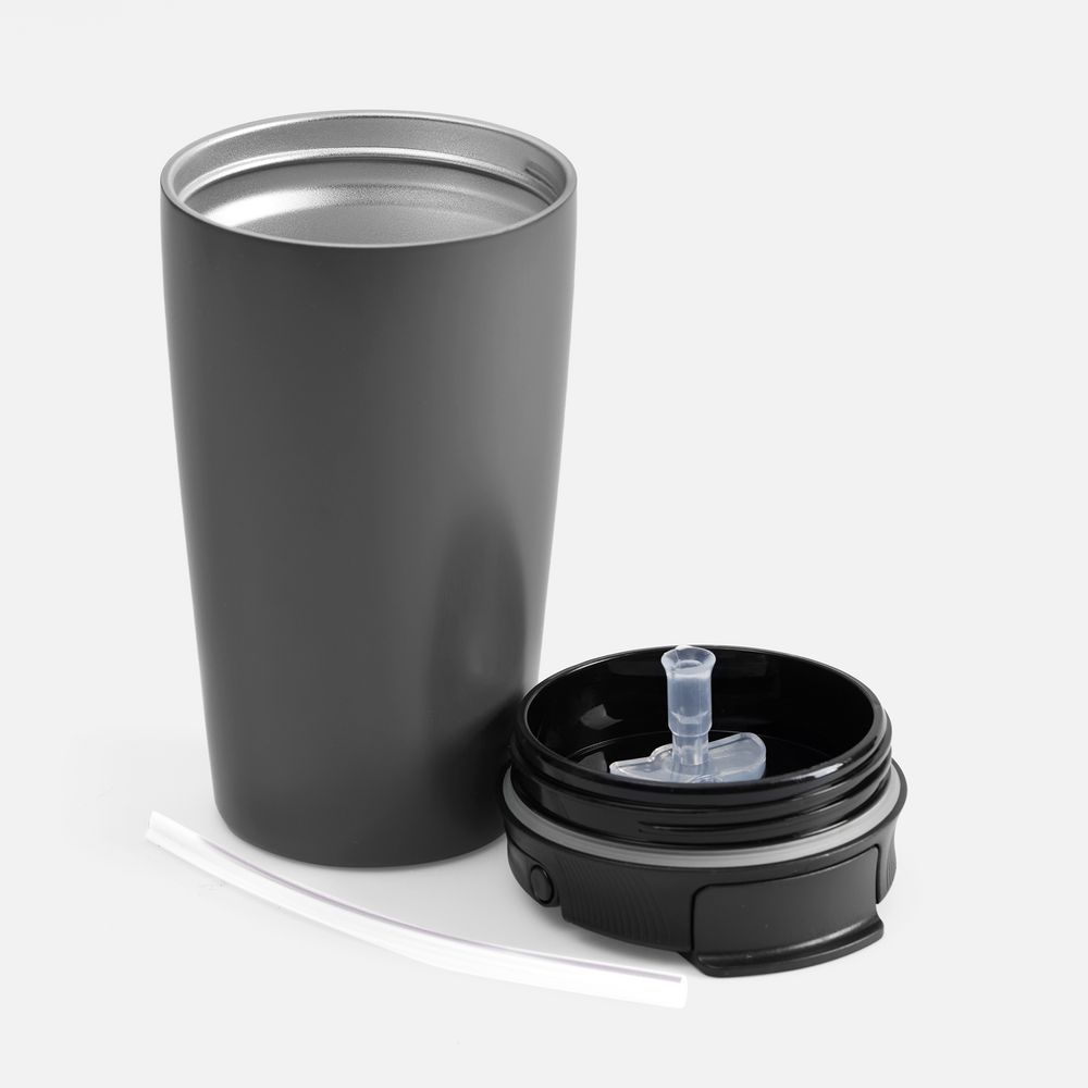 Термостакан с двумя поильниками Duetta, серый купить оптом и в розницу с нанесением логотипа в Санкт-Петербурге