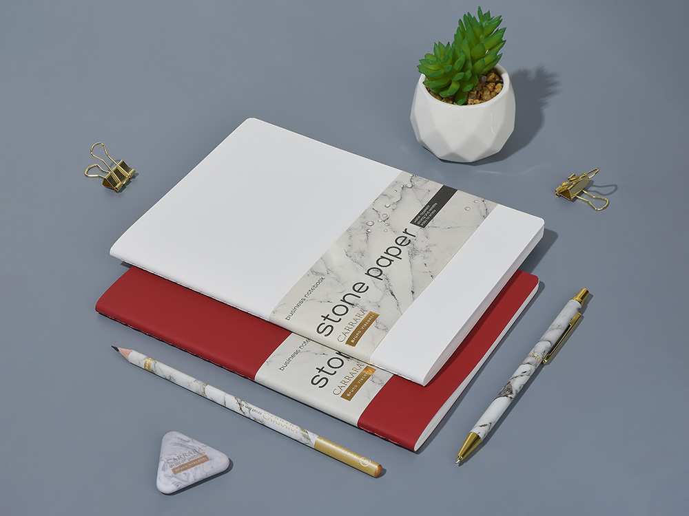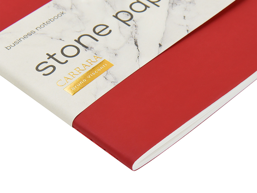 Тетрадь с каменной бумагой А5 Carrara 40 л., линейка, бордовый купить оптом и в розницу с нанесением логотипа в Санкт-Петербурге