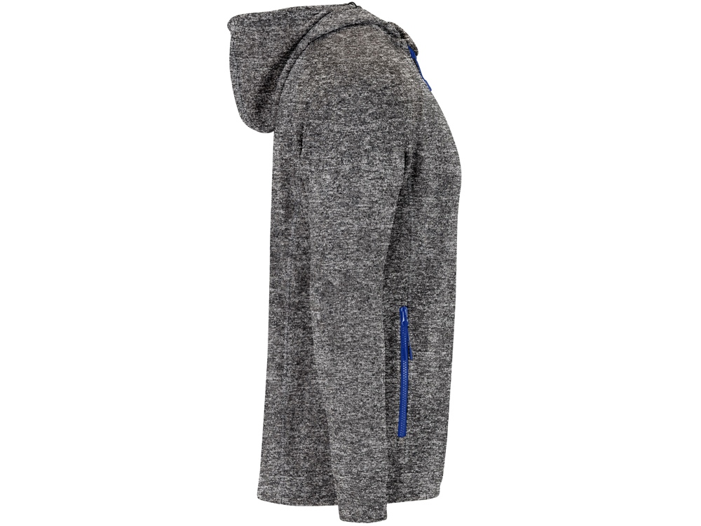 Толстовка на молнии с капюшоном. - Дизайнерские пластиковые молнии с бегунком. - Молния по центру с защитой для подбородка. - Высокий воротник с регуляторами и закрытыми внутренними швами. - Дополнительная декоративная молния на воротнике для облегчения одевания и снятия. - Два кармана спереди на молнии. - Спинка немного длиннее переда.