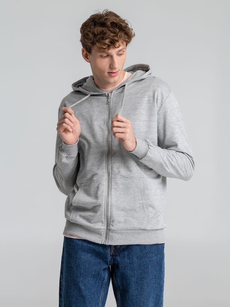 Толстовка на молнии с капюшоном Siverga 2.0, серый меланж купить оптом и в розницу с нанесением логотипа в Санкт-Петербурге