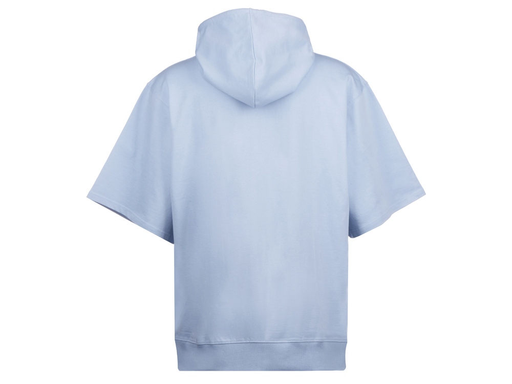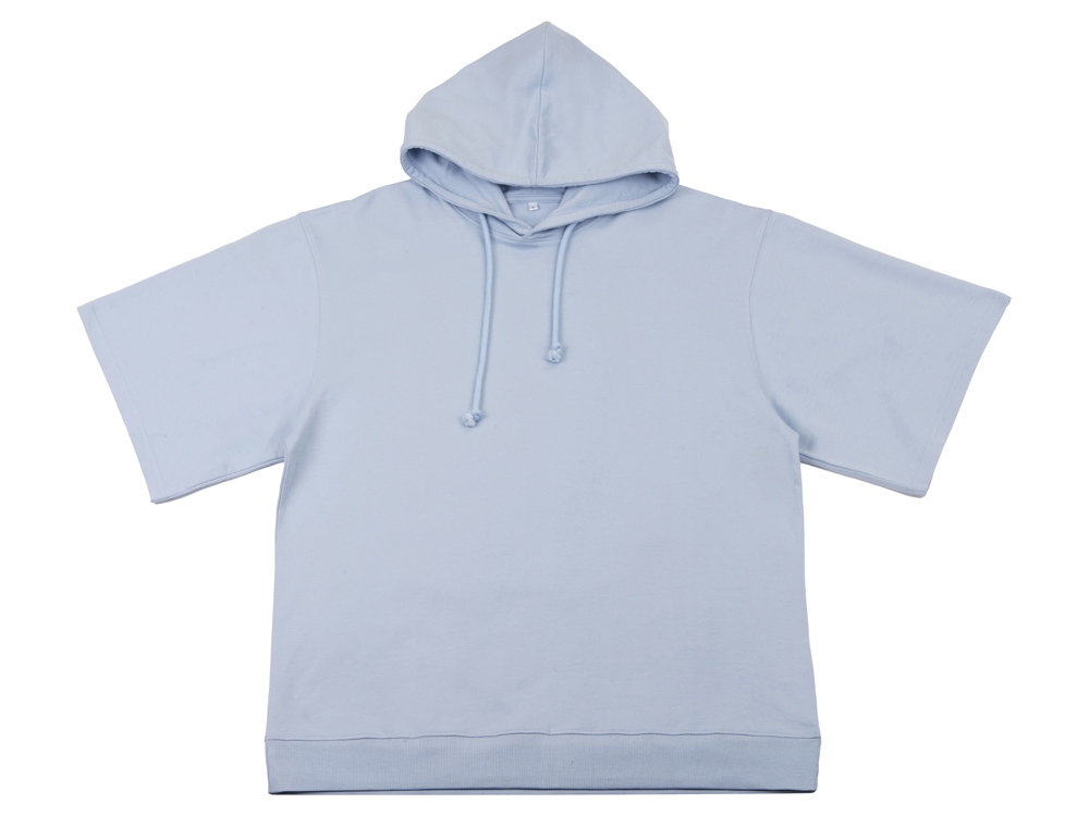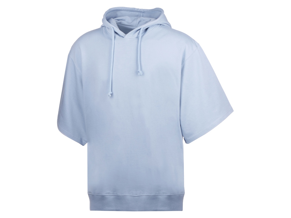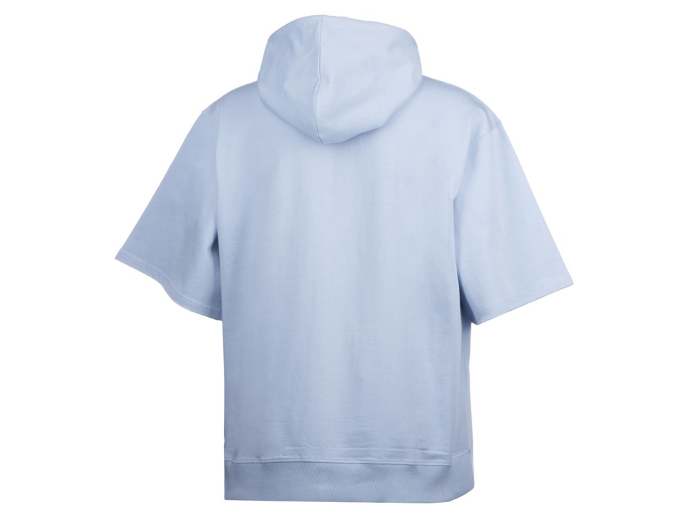 Худи с коротким рукавом выполнено из хлопкового френч терри с петельками на изнаночной стороне. Подкладка капюшона выполнена из основного полотна для объемной посадки. Модель комфортной и актуальной посадки оверсайз отлично подходит для обычной жизни и в качестве промо мерча. - оверсайз посадка - низ обработан рибом 2х2 и дополнительно отстрочен для укрепления - мягкое и качественное полотно френч терри - увеличенная зона для нанесения из-за отсутствия кармана
