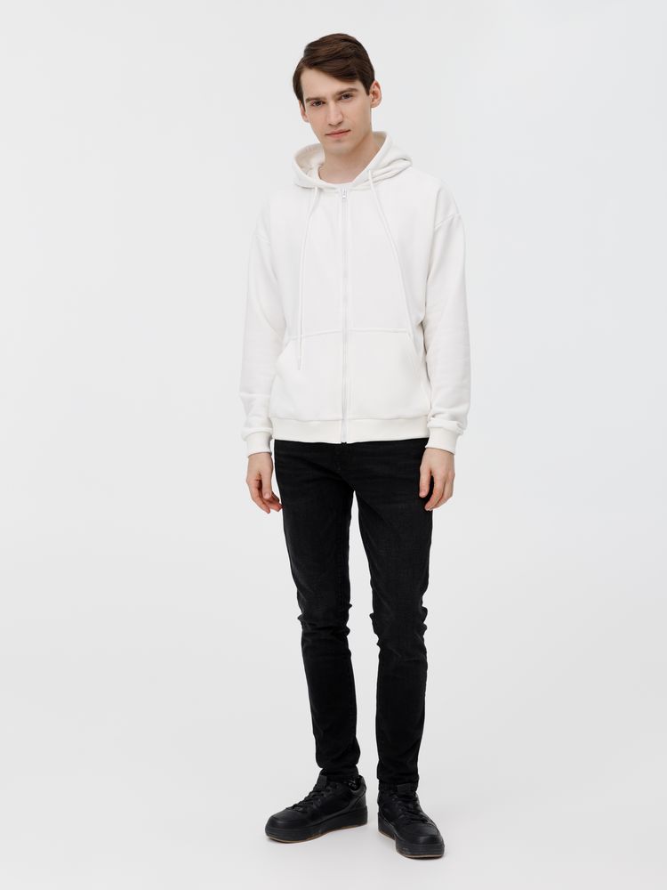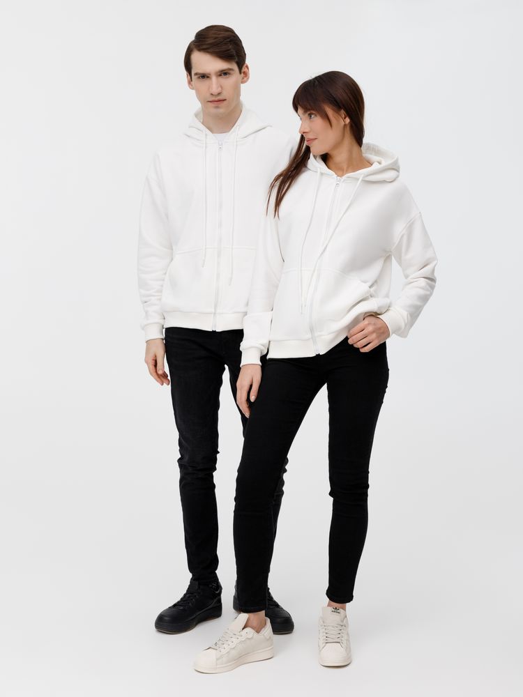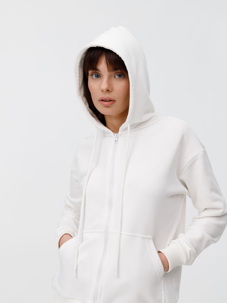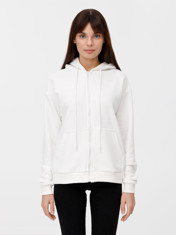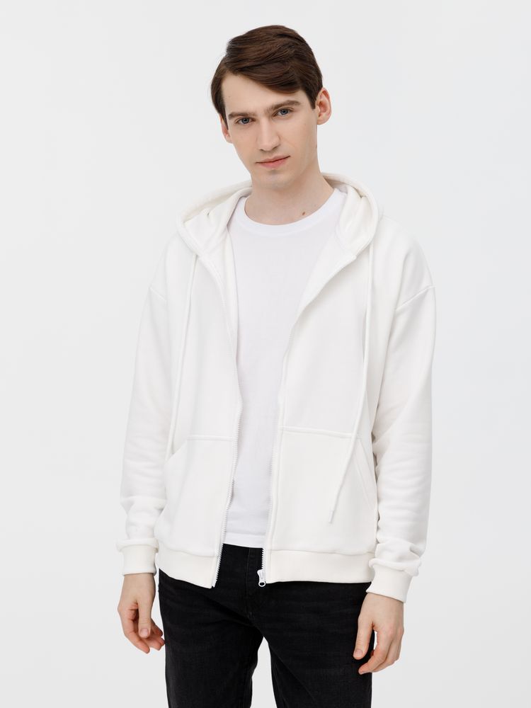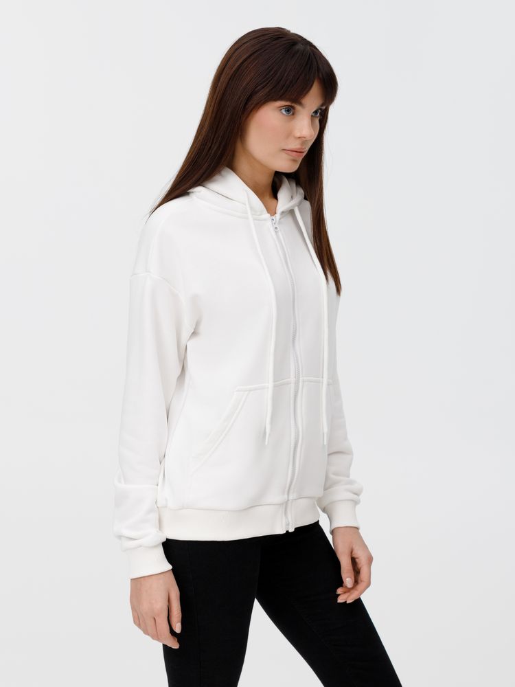 Толстовка унисекс оверсайз на молнии Zippy Terry, белая купить оптом и в розницу с нанесением логотипа в Санкт-Петербурге