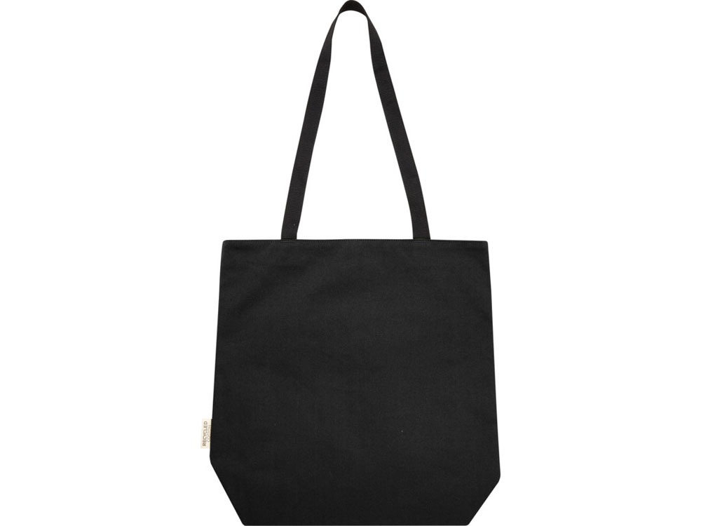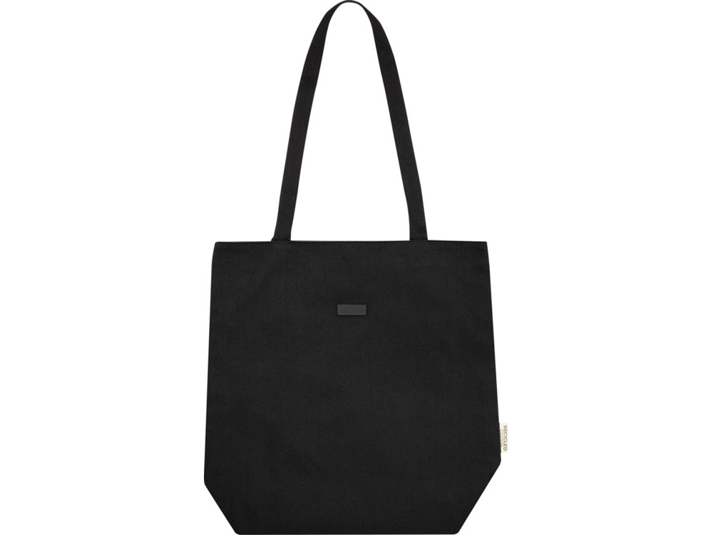 Эко-сумка изготовлена из переработанного холста, сертифицированного по стандарту GRS, и имеет подкладку из переработанного ПЭТ-пластика, сертифицированного по стандарту GRS. Универсальная эко-сумка имеет мягкое отделение для ноутбука с диагональю 15 дюймов и два карманных рукава внутри для телефона, кошелька или аксессуаров, а также удобную застежку на кнопке для открытия и удобные плетеные ручки из хлопка. Декоративная металлическая пластина может придать логотипу сияние благодаря утонченному матовому покрытию.