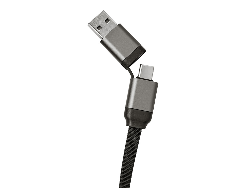 Универсальный зарядный кабель с подставкой Ironwood N2 — ваш надёжный помощник в любой ситуации. Он объединяет в себе функции мощного зарядного кабеля и удобной подставки для смартфона — идеально для офиса, кафе или дома. Благодаря входному разъёму 2в1 (USB-C и USB-A) и выходному 2в1 (USB-C и Lightning), вы заряжаете любые современные устройства. Поддержка быстрой зарядки до 45 Вт обеспечивает молниеносное восполнение энергии даже у мощных гаджетов. Корпус выполнен из прочного переработанного алюминия по стандарту RCS — стильный, экологичный и долговечный. Компактный дизайн позволяет легко поместить в сумке, рюкзаке, кармане или закрепить на связке ключей. Поставляется в индивидуальном конверте из переработанного картона. - Универсальность на каждый день — 2 входа (USB-C / USB-A) + 2 выхода (USB-C / Lightning) = один кабель для всех устройств. - Быстрая зарядка 45 Вт — заряжайте смартфоны, планшеты и ноутбуки на максимальной скорости. - Встроенная подставка — удобно ставьте телефон вертикально на столе, чтобы смотреть видео или принимать звонки. - Экологичный корпус из переработанного алюминия (RCS) — стиль, прочность и ответственность перед природой.