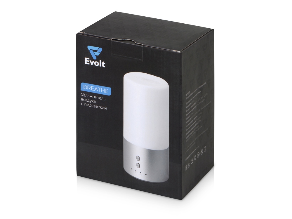 Увлажнитель воздуха с подсветкой Breathe, белый/серебристый купить оптом и в розницу с нанесением логотипа в Санкт-Петербурге