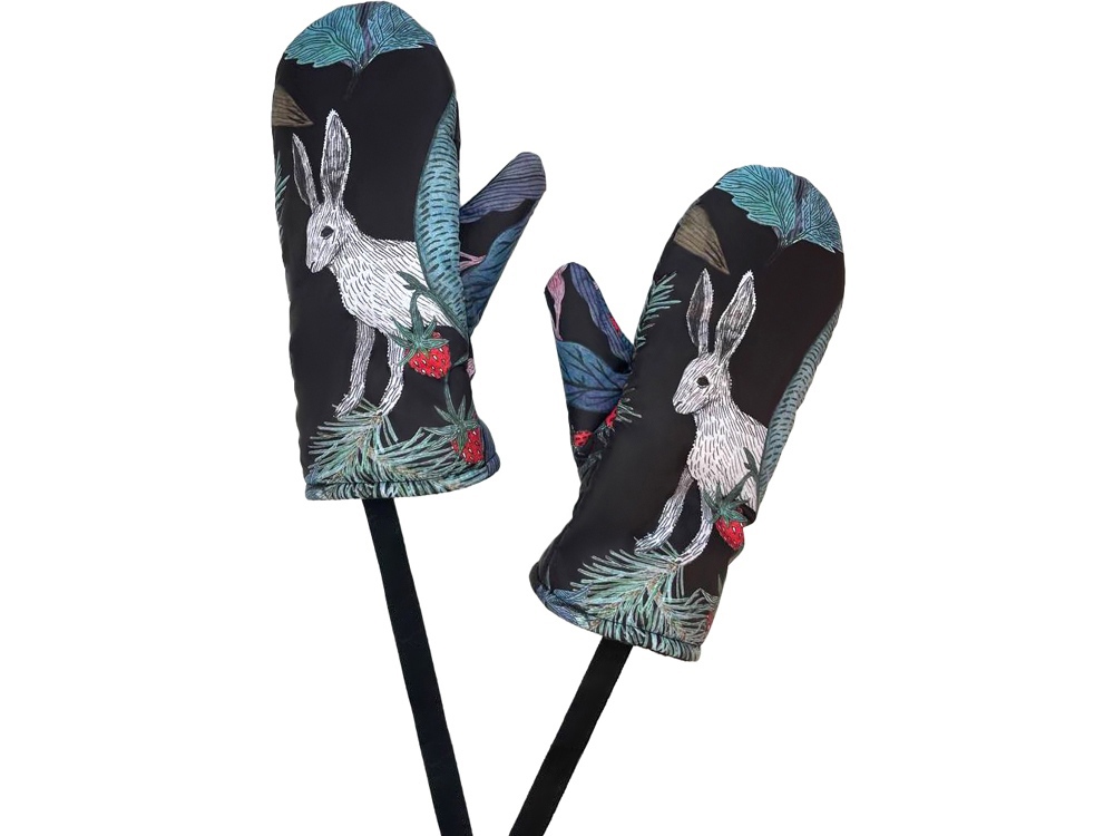 Утепленные варежки с принтом Зайцы. Верхняя ткань выполнена из непромокаемой курточной ткани, внутри флисовый подклад и утеплитель - холлофайбер. Температурный режим до -20 градусов. Варежки на ленте, как в детстве. Эти варежки не только теплые и стильные, но и предлагают вам уникальную возможность персонализации! На ленте, соединяющей варежки, вы можете разместить любое лого или изображение, используя метод термотрансфера. Это идеальный способ добавить индивидуальности вашему аксессуару или создать замечательный подарок для друзей и близких. Сделайте ваши варежки уникальными и выделяйтесь из толпы! Авторский принт написан художницей вручную специально для российского бренда Varvara. Художница размышляла на тему русской природы, культуры и искусства - тут и лесная земляника, и сочная зелень, и конечно, сказочные зайцы - как будто только что сошли с полотен В. Васнецова. Варежки упакованы в подарочный тубус. Бережный уход: - Ручная стирка при температуре не выше 30 градусов. - Сушка в горизонтальном положении. * фрагмент принта может отличаться от представленного на фото