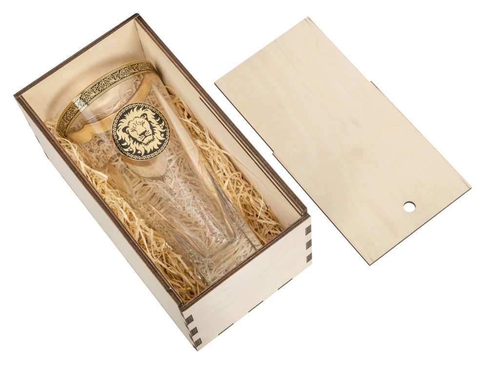 Ваза с изображением льва станет отличным украшением интерьера. Ваза выполнена из высококачественного прозрачного хрусталя с окантовкой из золотистого орнамента. В комплекте прилагается подарочная упаковка.