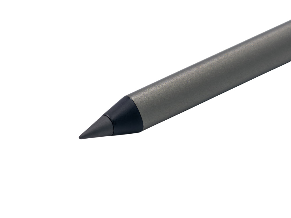 Карандаш изготовлен из переработанного алюминия. В отличие от обычных карандашей его не нужно точить, и он не пачкает руки. С обратной стороны карандаша есть стилус, которым удобно что-то делать на телефоне или планшете.