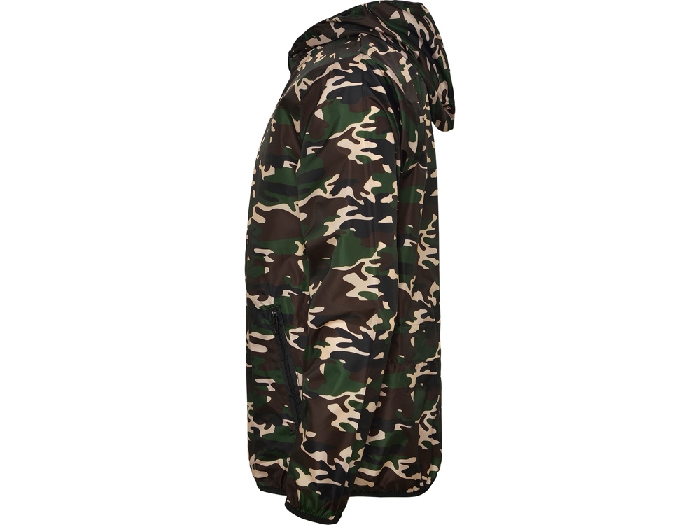 Ветровка с капюшоном из воздухонепроницаемой ткани *контрастная центральная молния *накладной карман с застежкой на липучку на спинке в который складывается изделие *низ рукава и изделия обработаны резинкой контрастного цвета *подкладка капюшона из сетки с отделкой плоским швом
