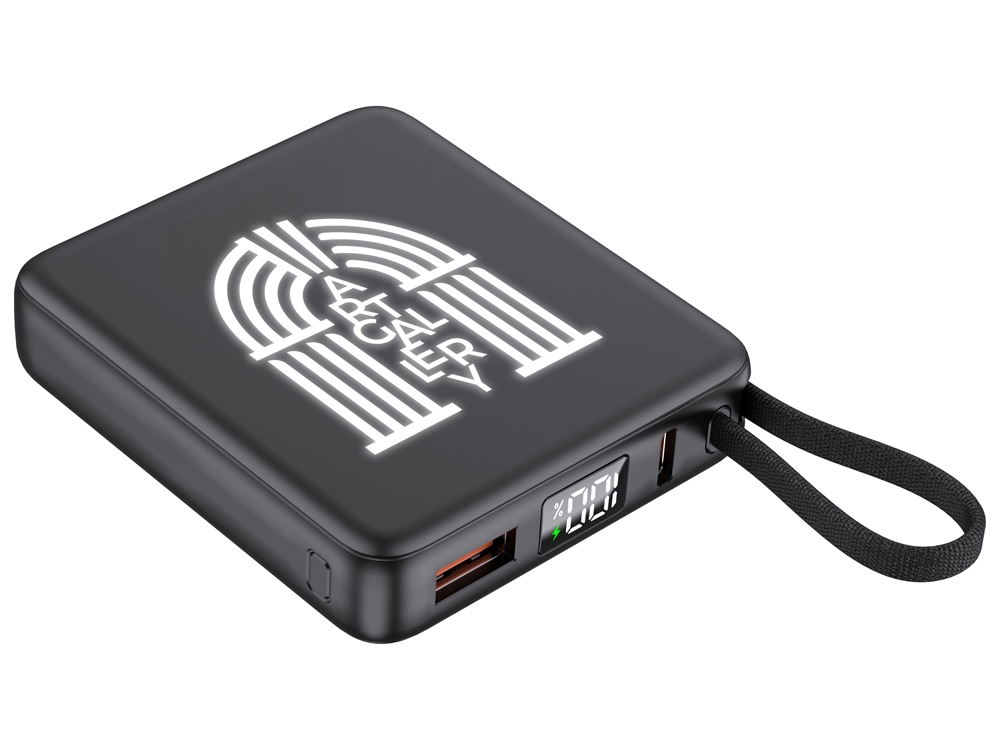 Миниатюрный и функциональный повербанк – идеальное сочетание компактности, технологичности и стиля. Этот современный повербанк, помещающийся в ладонь, станет незаменимым аксессуаром для тех, кто ценит удобство и стиль. Благодаря продуманному дизайну и инновационным решениям, он не только экономит место, но и подчеркивает индивидуальность своего владельца. А возможность брендирования светящимся лого делает его мощным инструментом для рекламы вашего бизнеса. Уникальные преимущества: - Встроенный кабель Type-C и он же петелька для переноски: Современный стандарт Type-C, подходящий для зарядки всех последних популярных смартфонов, включая iPhone. Кабель также выполняет роль удобной петельки - Классический разъем USB-A: Для зарядки устройств без Type-C – универсальное решение для любых гаджетов. - Светящийся логотип: Привлекает внимание и становится ярким элементом вашей рекламной кампании. - Цифровой дисплей уровня заряда: Позволяет точно контролировать остаток энергии - Матовое софт-тач покрытие: Удобное и приятное на ощупь, оно предотвращает скольжение и придает повербанку премиальный внешний вид. Этот повербанк – идеальный выбор для тех, кто ценит компактность, функциональность и стиль. Он не занимает много места, но выделяется своим дизайном и ярким лого. Встроенный кабель избавляет от необходимости носить дополнительные провода, а универсальные разъемы позволяют заряжать практически любой современный смартфон или гаджет.