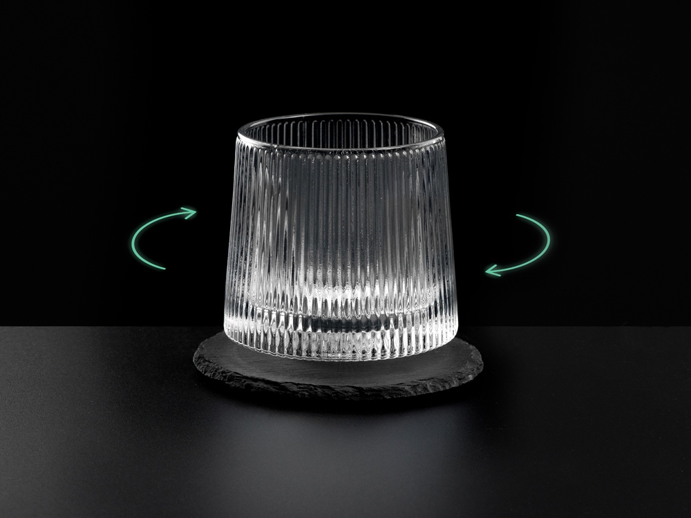 Погрузитесь в атмосферу элегантности и современного дизайна со стаканом Ventura, выполненным из качественного содового стекла. Его уникальная особенность — специально разработанное дно, позволяющее стакану вращаться вокруг своей оси, создавая эффект плавного движения напитка. Особенности: Материал: содовое стекло — прочное и устойчивое к механическим повреждениям. Объем: 200 мл — идеален для виски, коньяка, ликеров и других крепких напитков. Дизайн: трендовые внешние грани и эффектное вращающееся дно подчеркивают цвет напитка. Подставка: натуральный сланец, подчеркивающий стиль и защищающий поверхность стола. Уход: не рекомендуется использовать в посудомоечной машине и микроволновой печи. Этот стакан станет не только функциональным аксессуаром, но и стильным элементом декора, который впечатлит ваших гостей и подчеркнет ваш изысканный вкус. Особенно приятно любоваться тем, как сверкают блики при попадании солнечных лучей при вращении.