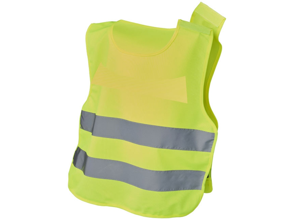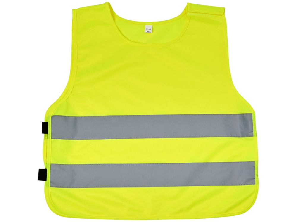 Защитный жилет на липучках Odile для детей 3-6 лет. Сигнальный аварийный жилет размером XXS подходит для детей в возрасте 3-6 лет, ростом 70-104 см. Большая зона для декорирования спереди и сзади жилета. На плечах и нижних эластичных лентах имеются застежки на липучке, которые обеспечивают дополнительную безопасность и облегчают надевание жилета. С другой стороны эластичные ленты могут растягиваться, что позволяет легко надевать жилет на толстый шар одежды. Аварийный жилет протестирован и сертифицирован в соответствии с нормативами EN 1150:199. Полиэстер.