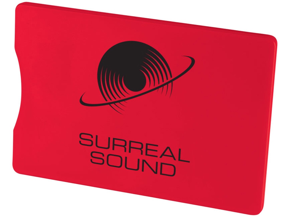 Защитный RFID чехол для кредитной карты. Благодаря RFID защите чехол надежно защитит вашу карту от несанкционированных транзакций. Чехол достаточно тонкий, так что вы можете держать его в бумажнике, сумочке или в кармане. Большое место для нанесения. Пластик.