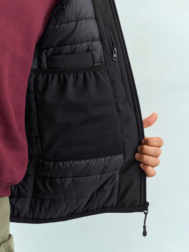 | Материал | верх - переработанный полиэстер, 94%; эластан 6%, плотность 270 г/м²; софтшелл; подкладка - нейлон 100%; утеплитель - переработанный полиэстер, 100% |