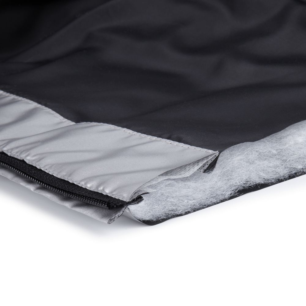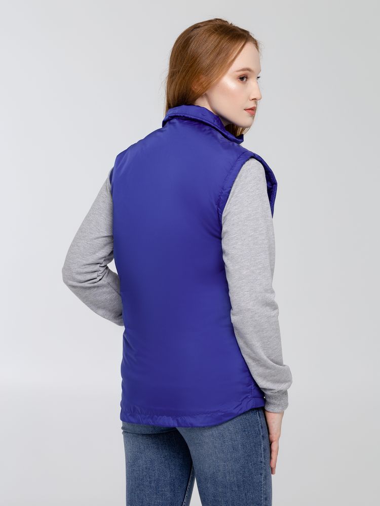 Воротник-стойка, скругленный низ, два наружных кармана на молнии и один внутренний на липучке. Застежка-молния в тон жилета. Для удобства нанесения логотипа можно частично отстегнуть подкладку.