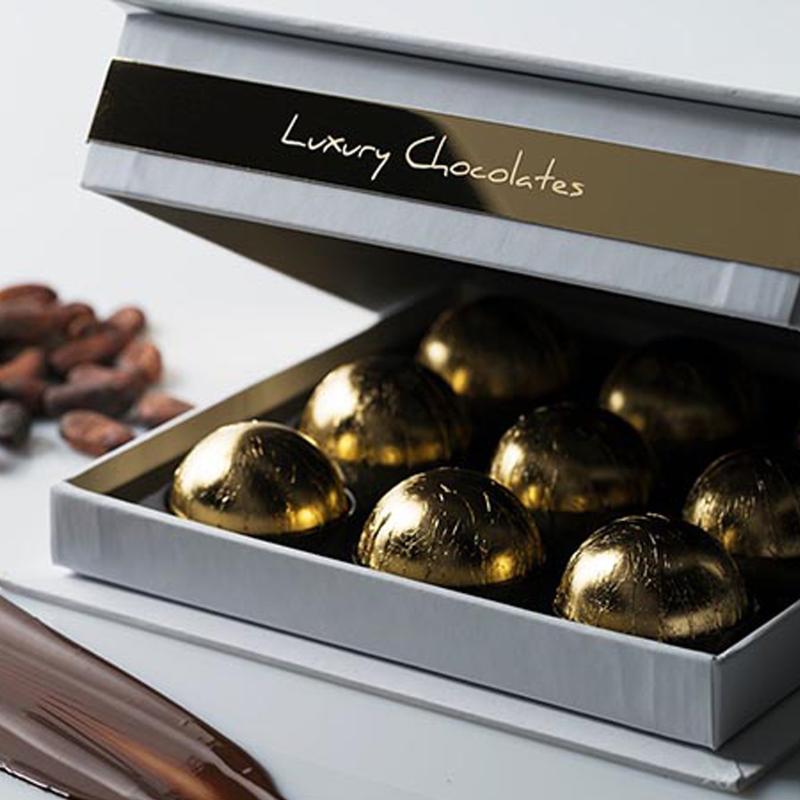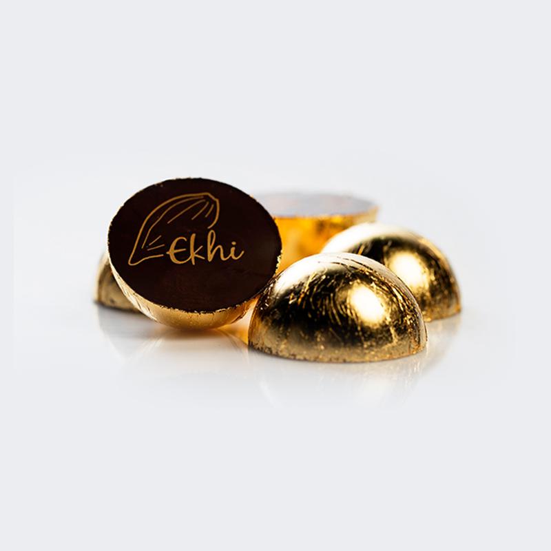 • Люксовый шоколад полностью покрытый 22.5 - каратным золотом