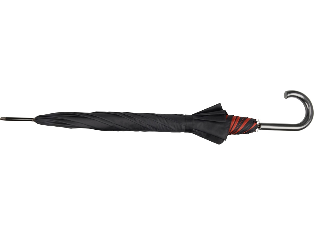 Интересный двухцветный зонт-трость спасет вас от дождя и легкого снега. Внешняя поверхность купола окрашена в черный цвет, а внутренняя имеет яркий, насыщенный оттенок, что непременно привлечет внимание. На купол зонта можно нанести логотип.